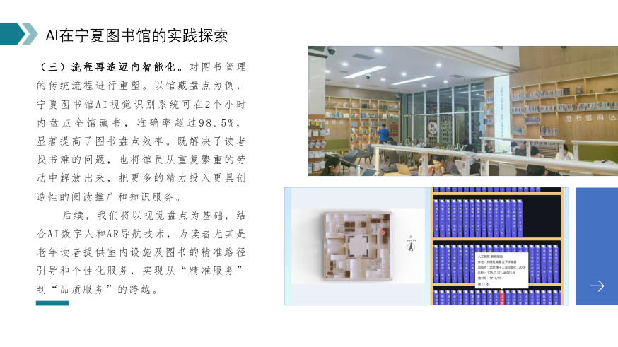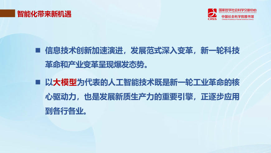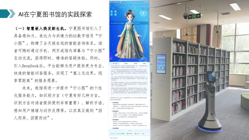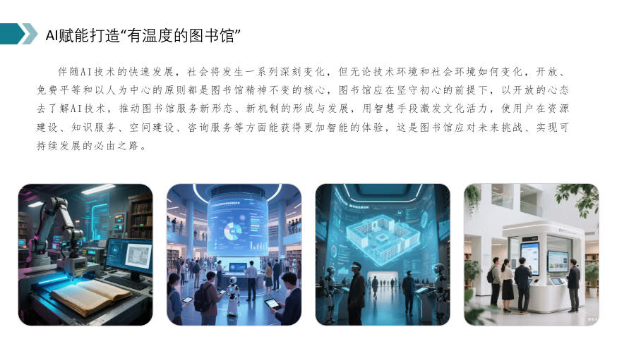 Chen highlighted the pivotal role of artificial intelligence in the ongoing technological revolution and industrial transformation. She emphasized how the widespread adoption of artificial intelligence is reshaping library functions, driving innovation in resource management and space utilization.