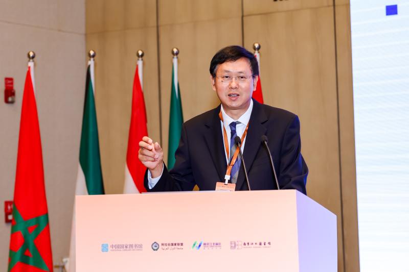 阿拉伯国家联盟秘书处信息、文献与翻译司司长哈莱·贾德在开幕式上致辞